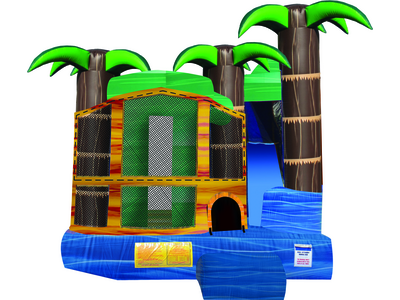 The Backyard combo style bounce house is the ultimate in inflatable jumpers! The large interior jumping area offers a basketball hoop. This bouncy castle has a climb feature and a convenient exit slide for hours of active fun! Parents and spectators are offered a clear view with the 360-degree mesh sides of this moonwalk. The Backyard combo bounce house is made of lite n strong™ fire-resistant vinyl for safety, durability and easy portability. This Backyard bouncy house is sure to make any indoor or outdoor event a great success!